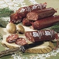 Diese Rohsalami enthält ca. 32 % Wildschweinfleisch. Im Vergleich zu den anderen Wildsalamis hat sie einen noch kräftigeren Geschmack. Die Wildschweinrohsalami ist in 300g-Stücken erhältlich.